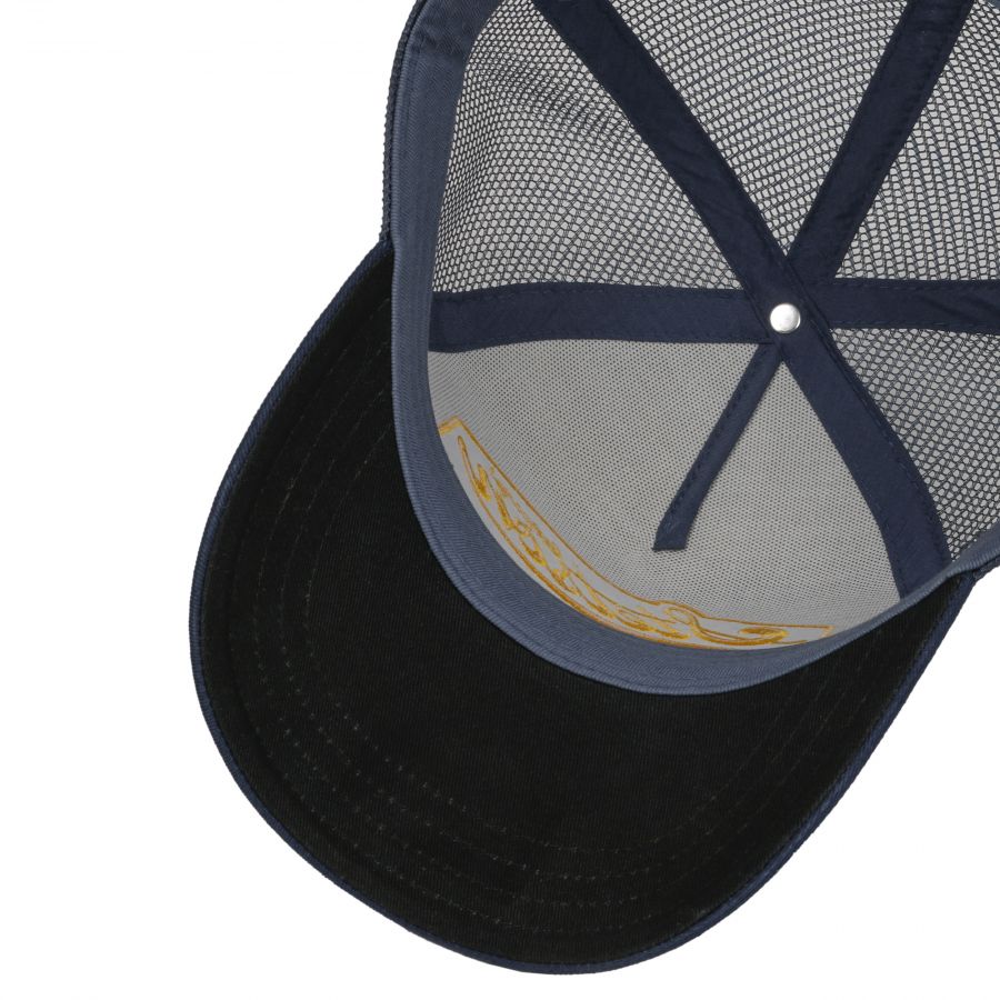 Fans of the American lifestyle won`t leave the house without their trucker cap from cult designer, Stetson. The choice of cotton material impresses, as does the airy mesh insert at the back and the intricate motif with brand lettering above the visor with contrasting stitching. The cap always fits perfectly thanks to the option for adjusting the size at the back, so you can show off a carefree attitude towards life. One size fits all.