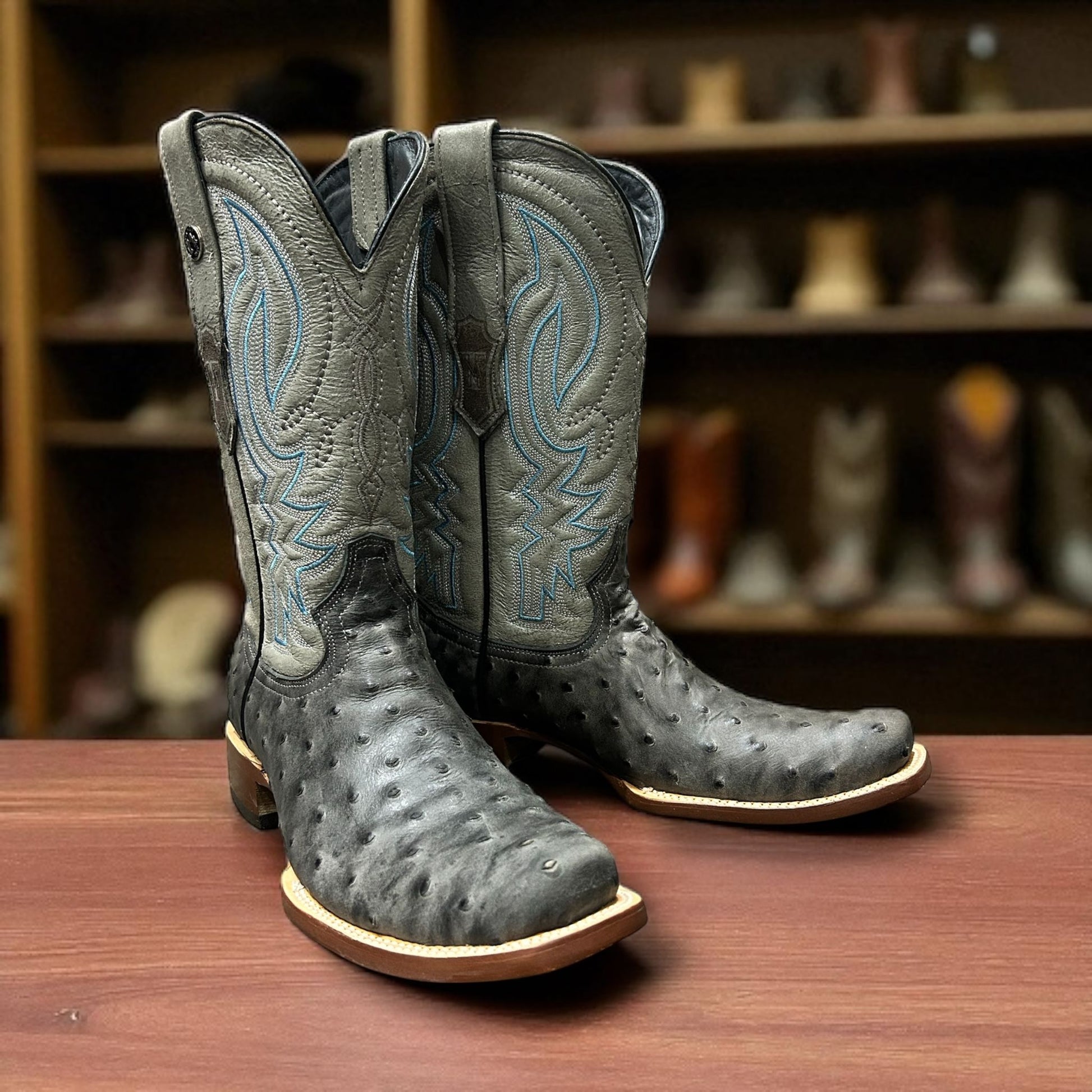 Tanner Mark Mens Boots Ostrich Print Monaco Grey TM201793