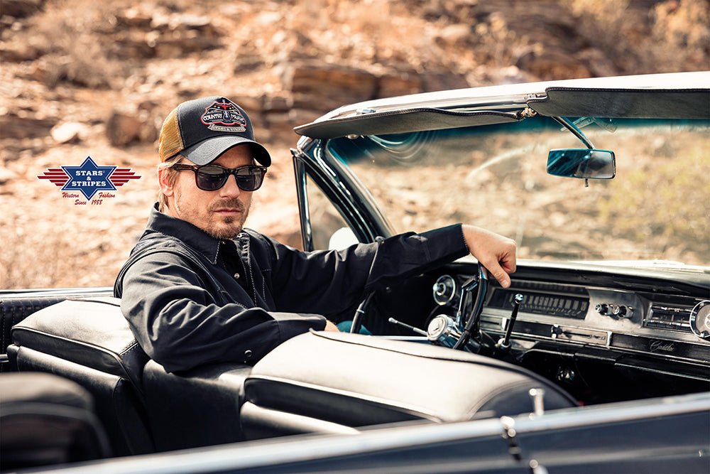 The 2-colour western trucker cap, consisting of 5 panels without a centre seam, is a real eye-catcher. The hard-wearing cotton body is high-quality and robust. The elaborate embroidery at the front, the airy mesh insert and the visor with 6 decorative seams make the curved brim cap a cool collector's item. It is ideal for outdoor activities. The trucker cap has a button covered in cap fabric on the top, which creates the perfect finish. Adjustable in size thanks to the classic snapback closure at the back of the head. This guarantees the perfect fit. A cotton sweatband ensures optimal moisture regulation. The trendy trucker cap in a timeless design can be combined with any style in a versatile way.