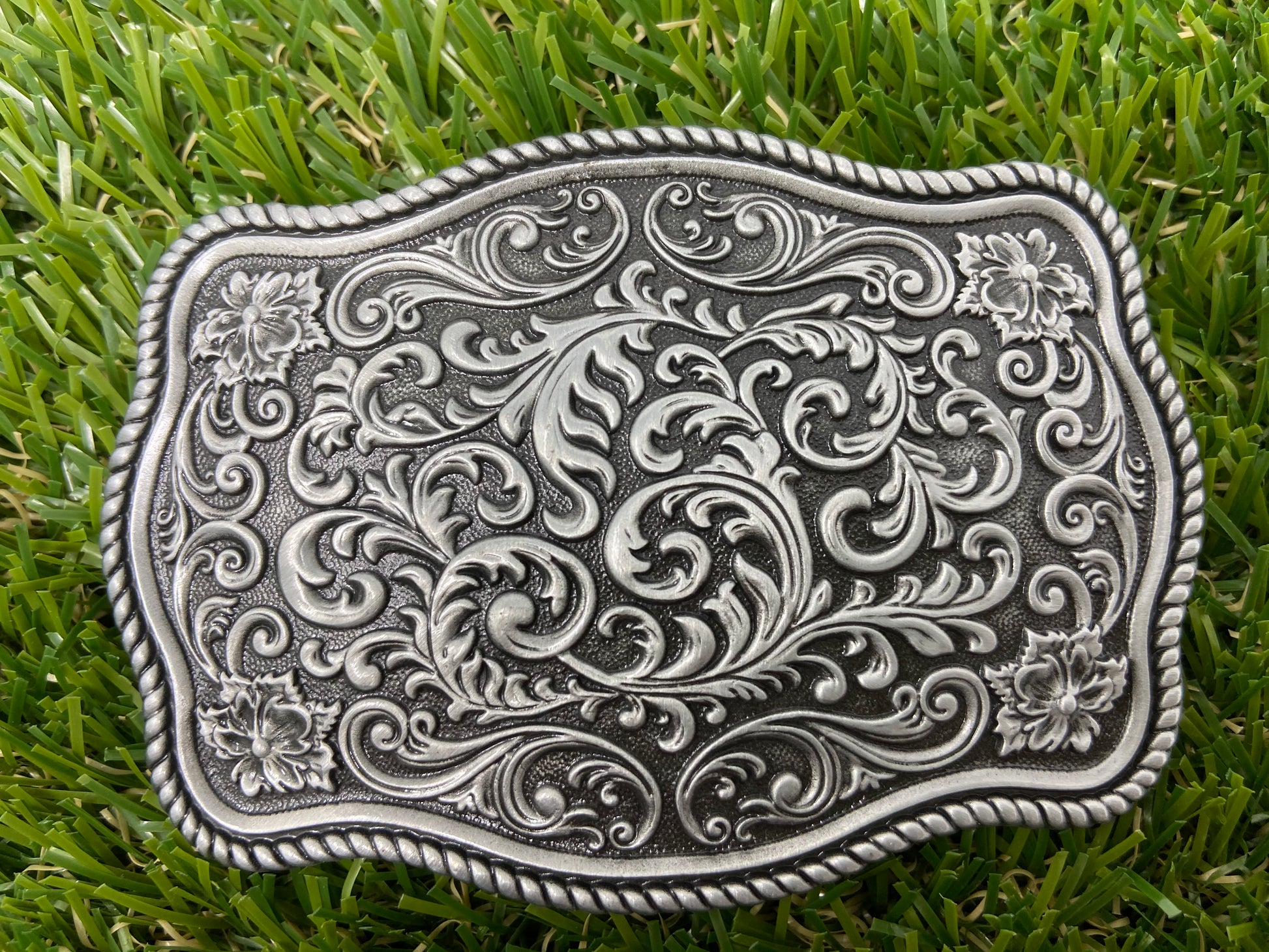 Vintage Cowboy Flower Pattern Western Belt Buckle WT142AS Silver