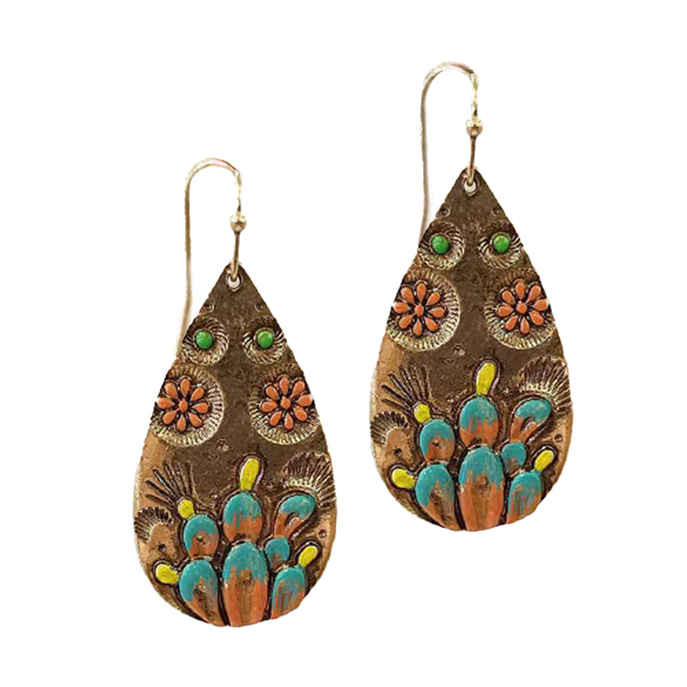 WE E-6692 Cactus Engraved Teardrop Earrings