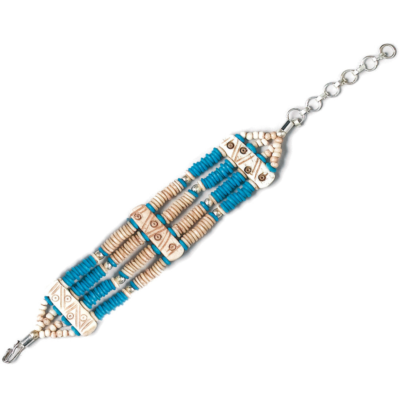 Handcrafted Turquoise and Brown Bone Bracelet