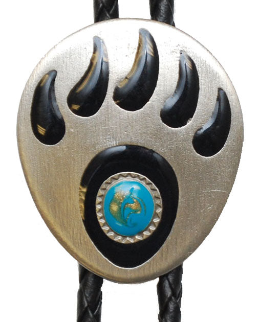Grizzly Claw Bolo Tie Turquoise Enamel & Pewter Made in USA