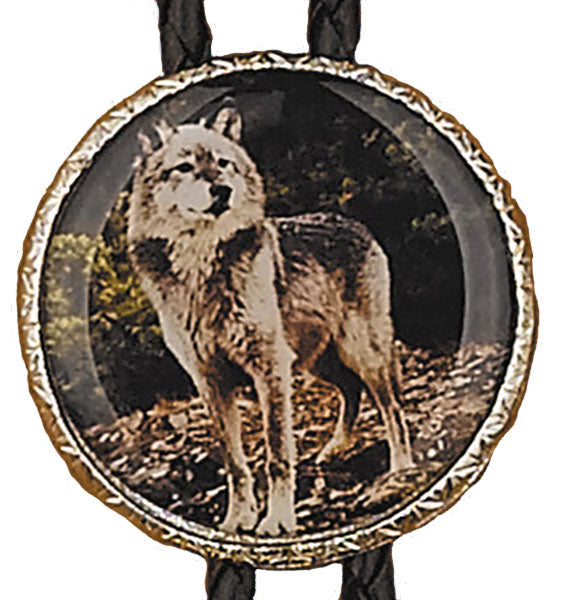 Wolf Bolo Tie Made in the USA, Silver Plated.