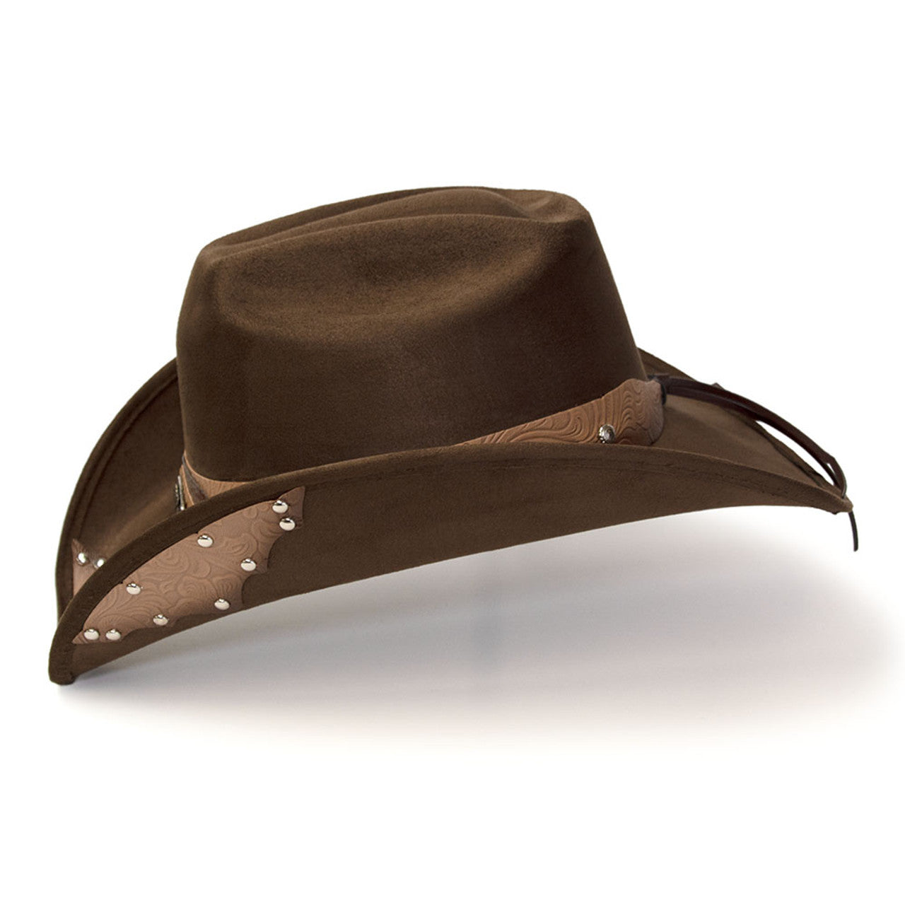 Western Express CL-99 Brown Suede Finish Western Hat with Tooled Hat Band & Leather Sides