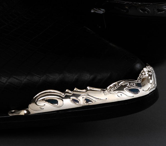Silver tone boot tip with cut-out detailing and scalloped edge. Sold in pairs, these fit most standard pointed toe boots. Nails are included for easy attachment.