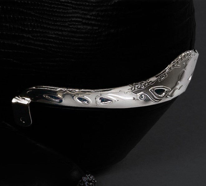 Silver tone heel guard with cut-out detailing and decorative border. Sold in pairs, these fit most regular width heels. Nails are included for easy attachment.