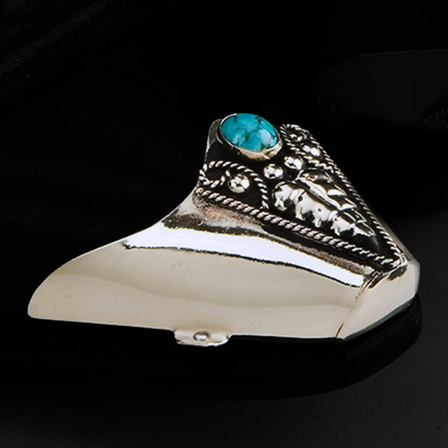 Pointed Silver Boot Tips with Engraved Swirls & Eagle