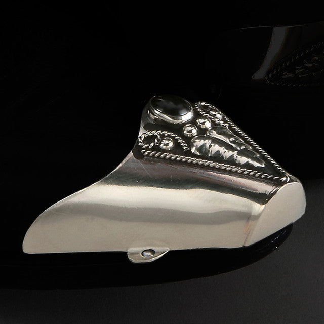 Pointed Silver Boot Tips with Engraved Swirls & Eagle