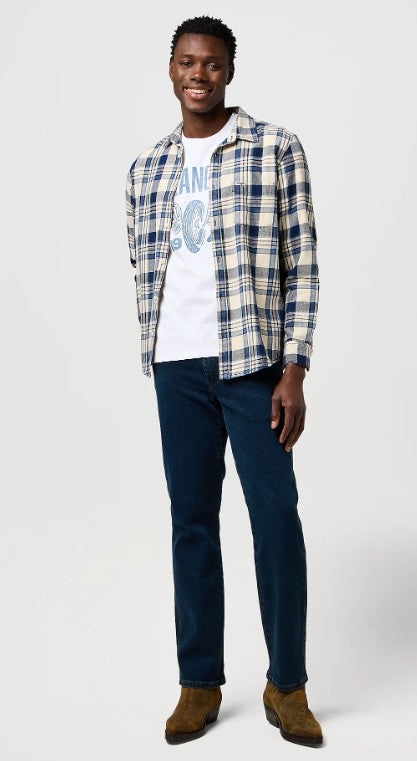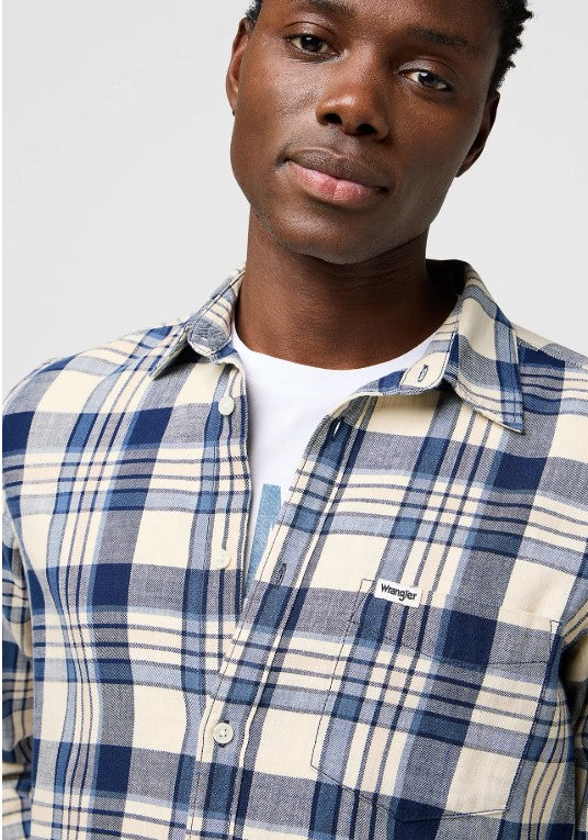 The long-sleeve One Pocket Indigo Shirt has a relaxed look and fit, but it also casual enough to dress down on more laidback outings. Designed to fit looser on the body, the One Pocket Indigo Shirt is a timeless and versatile long-sleeve shirt you can style up for every season. The indigo dye in the fabric is designed to fade over time the more you wash and wear it, developing a more worn, lived-in shade – the same you'd see on your favourite Wrangler denim.