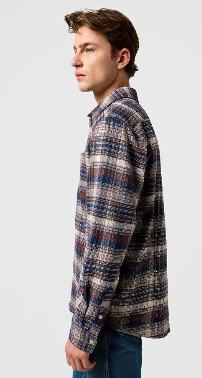 Wrangler Regular Brushed 1 Pocket Shirt in Navy Birch 112371556